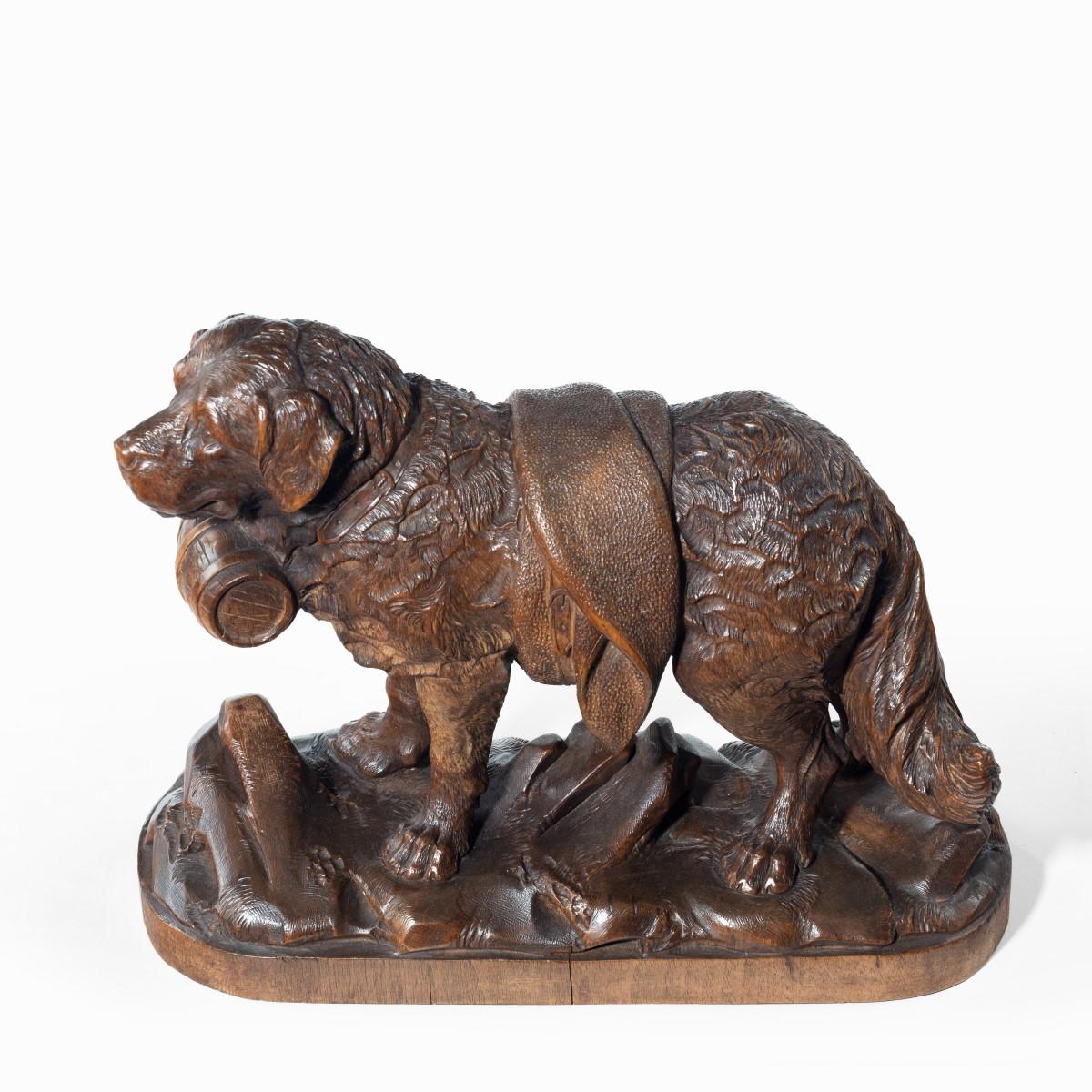Black Forest Carved Linden Wood Model of Mount Rescue Dog