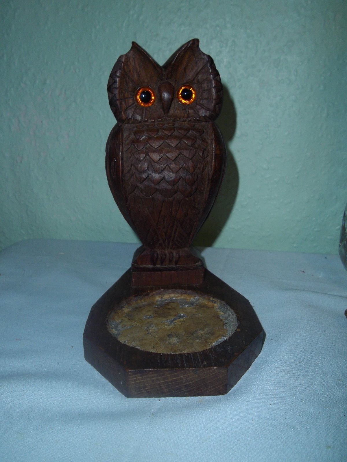 Black Forest Carved Wooden Owl Dish-Glass Eyes 1930s