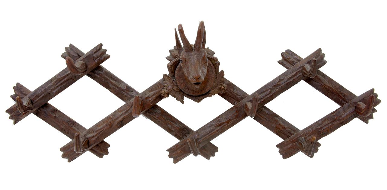 Black Forest Deer Head Carved Coat Hooks c.1880