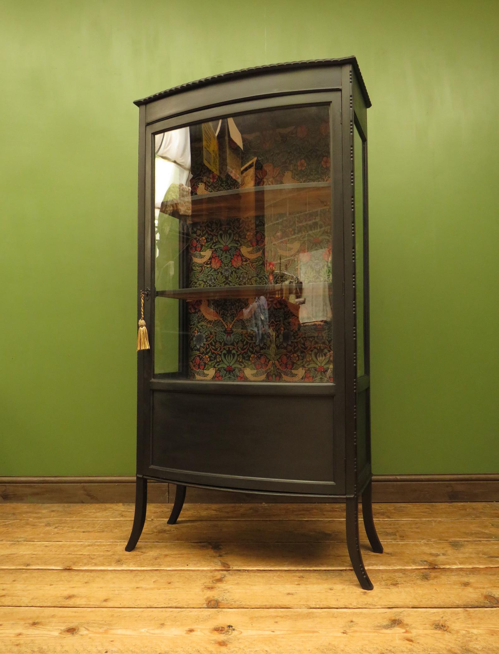 Black Glazed Cabinet with William Morris 'Strawberry Thief' Fabric Interior