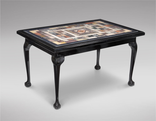 Black Lacquered Centre Table with Attractive Marble Inset