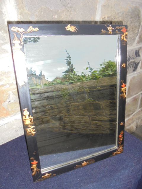 Black Lacquered Chinoiserie Easel Dressing Table Mirror c.1920