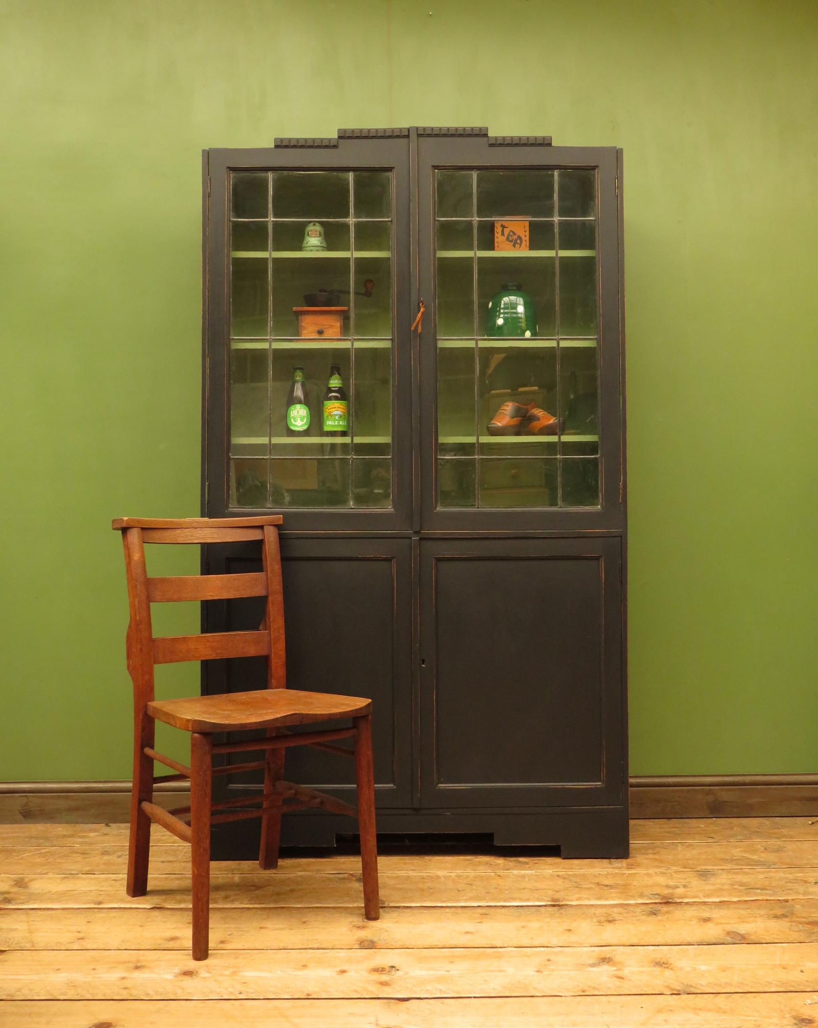 Black Painted Bookcase Cabinet 1930s