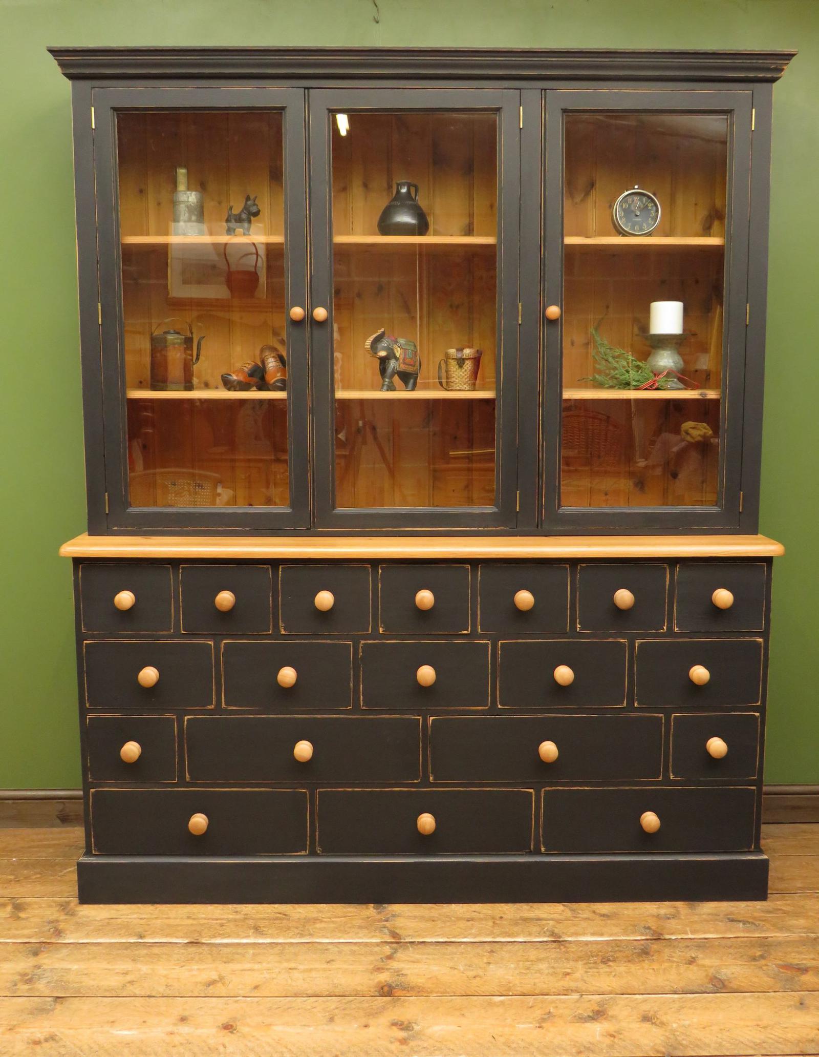 Black Painted Pine Apothecary Cabinet Style Dresser with Multi Drawer Base