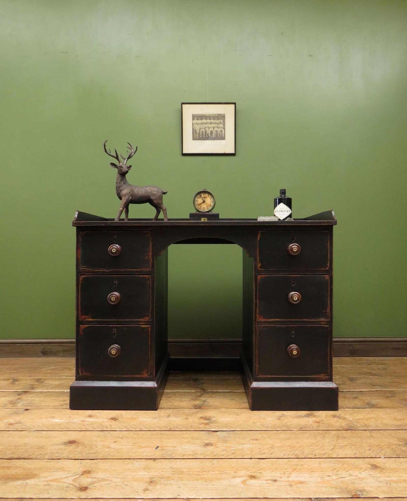 Black Painted Writing Desk with Drawers, Gothic Shabby Chic