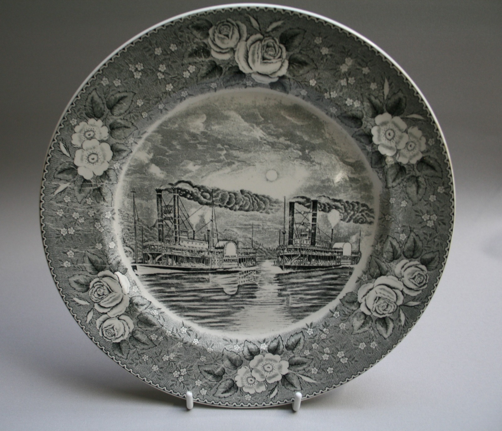 Black & White Adams Pottery Dinner Plate - a Midnight RAce On the Mississippi