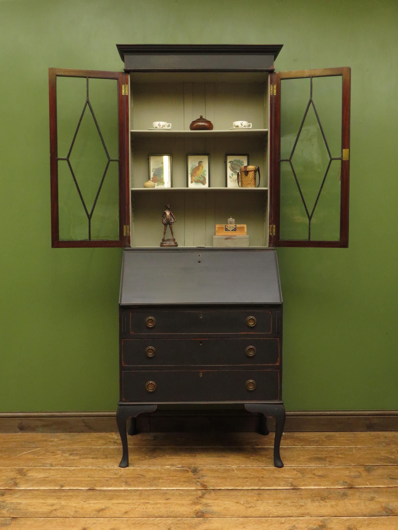 Black Writing Bureau Bookcase desk with fall front, gothic shabby chic