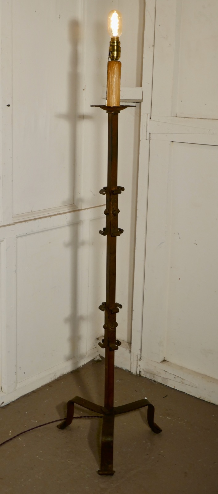 Blacksmith Made Gothic Wrought Iron Floor Lamp c.1920