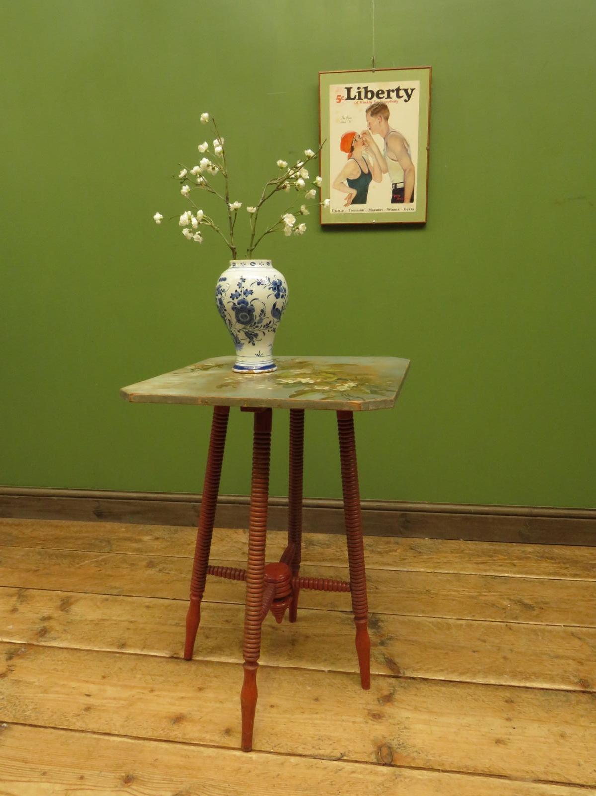 Bloomsbury Style Small Hand-painted Table with Red Bobbin Base