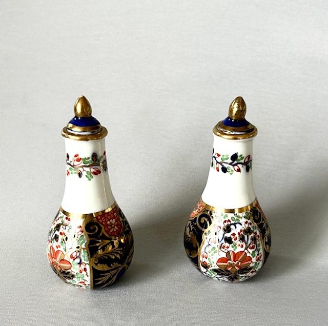 Bloor Derby Pair of Miniature Lidded Imari Pattern Vases