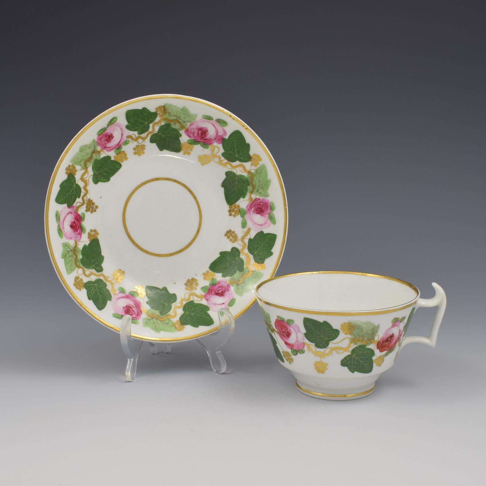 Bloor Derby Porcelain Pink Roses Tea Cup & Saucer c.1820