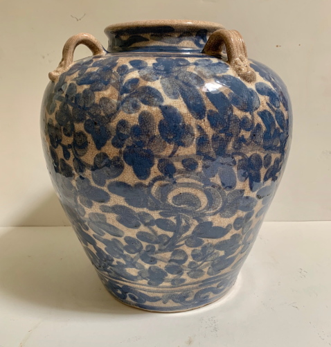 Blue Bulbous Pot with Four Loop Handles (1 of 3)