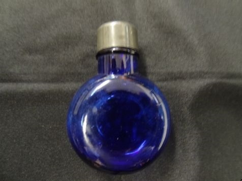Blue Glass Round Perfume Bottle, English Made, Circa Early 20th Century