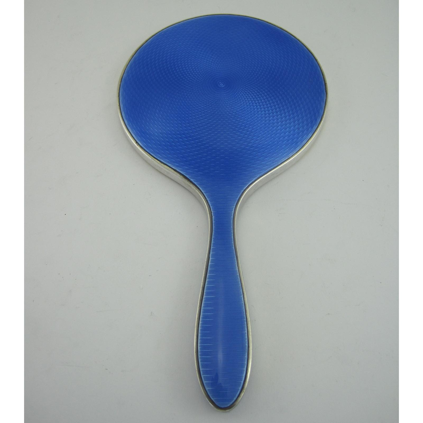 Blue Guilloche Enamel & Sterling Silver Hand Mirror (1 of 5)