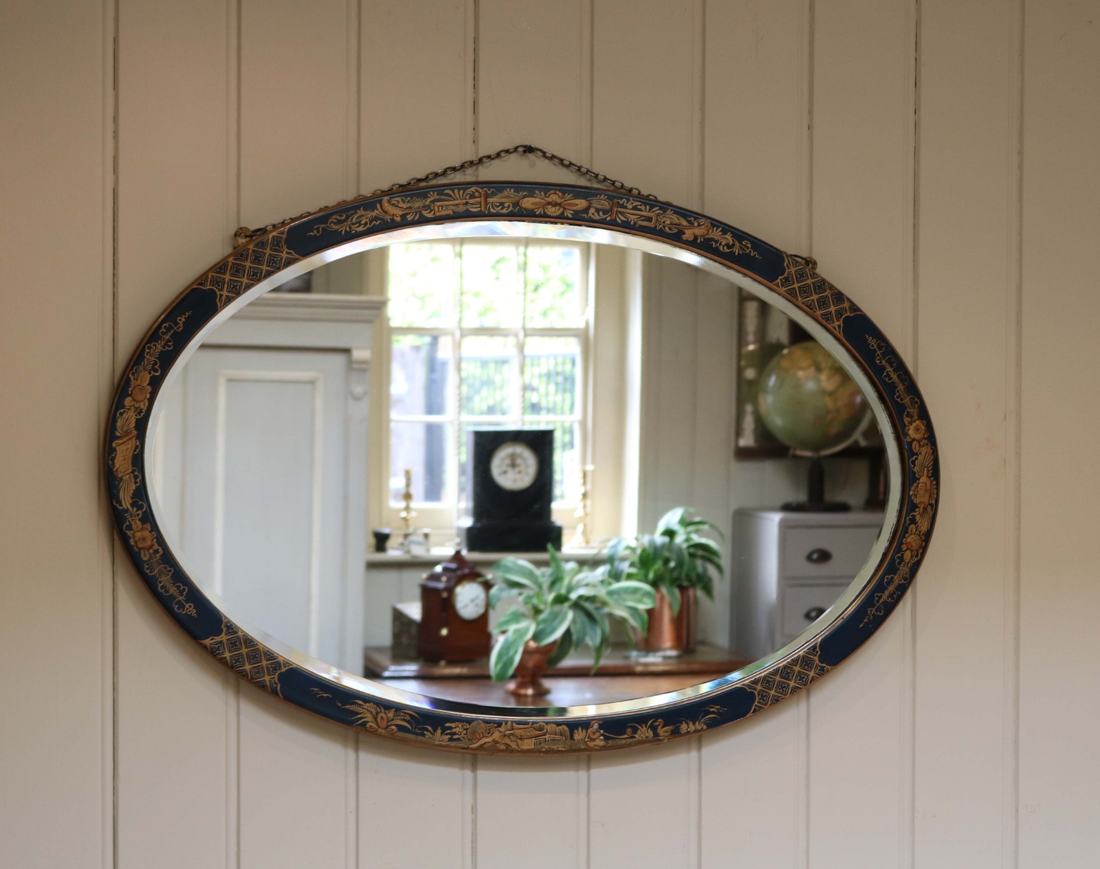 Blue Oval Chinoiserie Wall Mirror c.1920 (1 of 1)