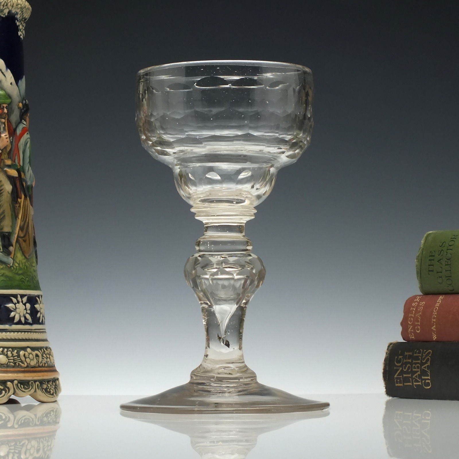 Bohemian 18th Century Facet Cut Glass Wine Goblet c.1730
