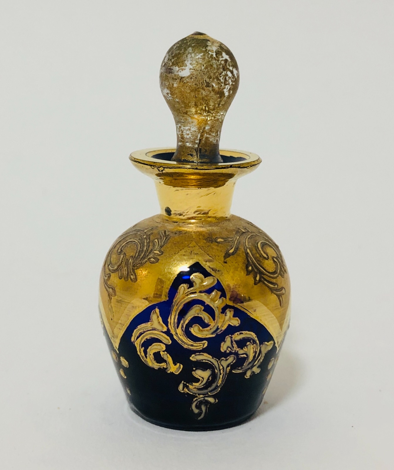 Bohemian Blue Glass Gilt Scent Bottle (1 of 7)