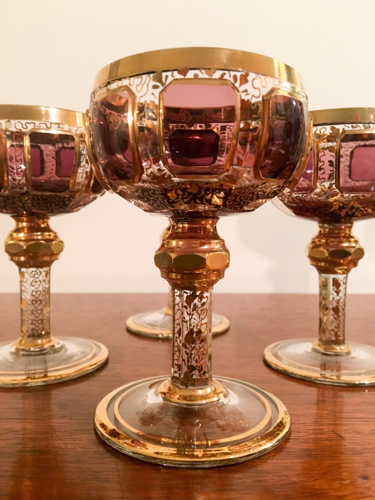 Bohemian Cranberry Cabochon Glasses Unsigned Moser