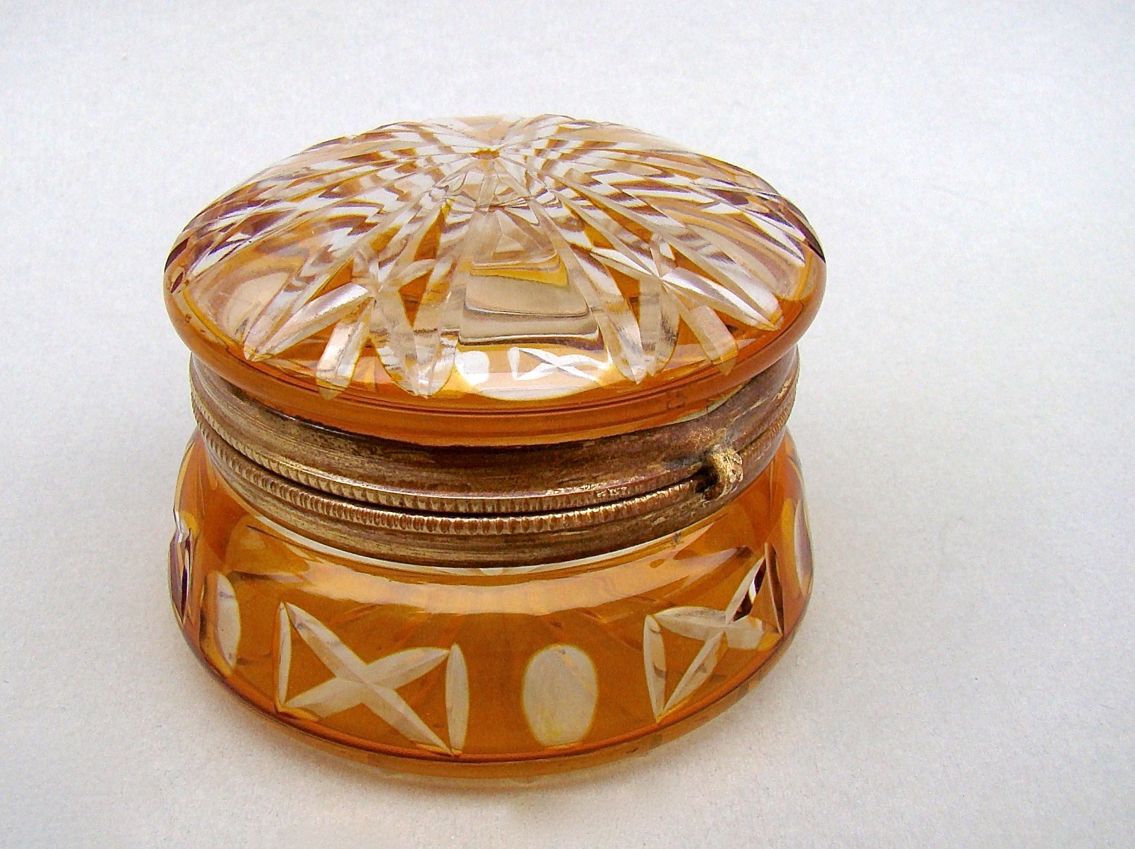 Bohemian Sliced-Cut Amber Glass Trinket Box c.1890