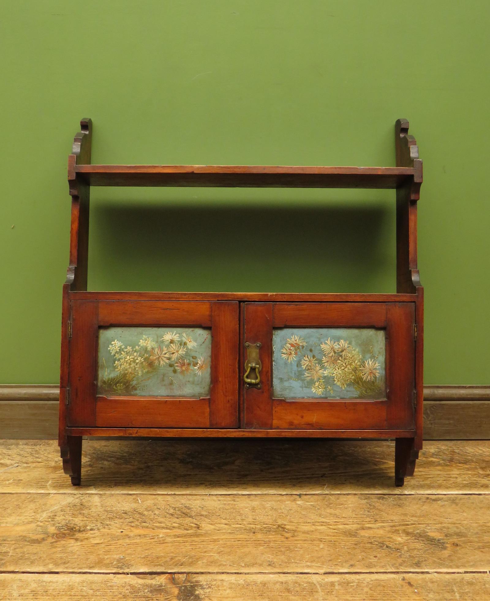 Bohemian Wooden Wall Cabinet with Painted Floral Panels