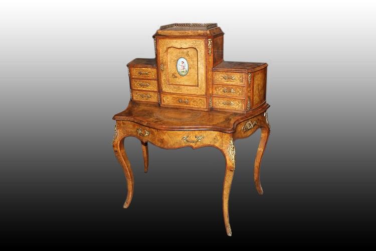 Bonheur du Jour Louis XV Style Writing Table from the Mid-1800s with Sevres Porcelain Medallion