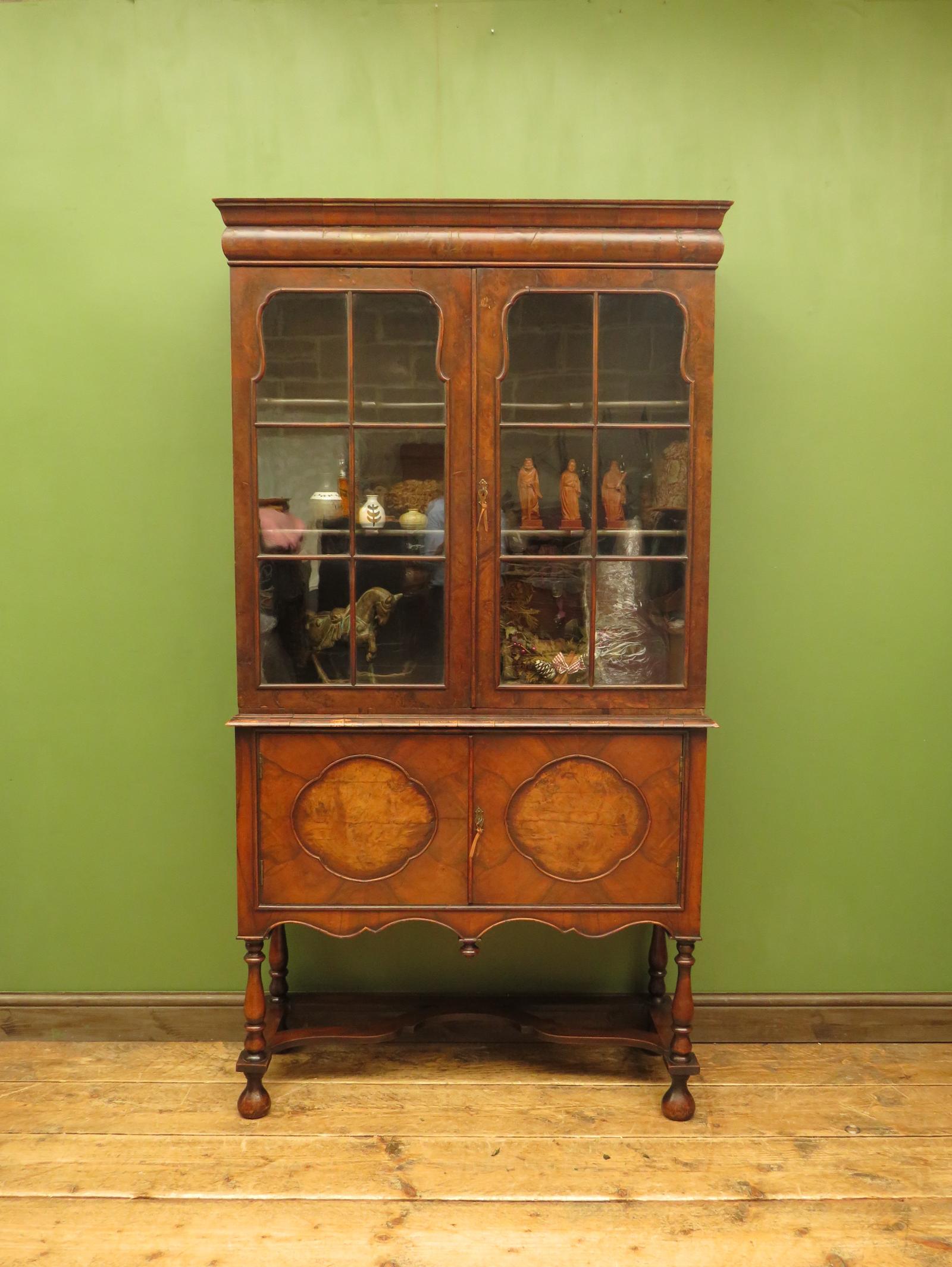 Bookcase Display Cabinet With Glazed Doors, Antique Lockable Cabinet