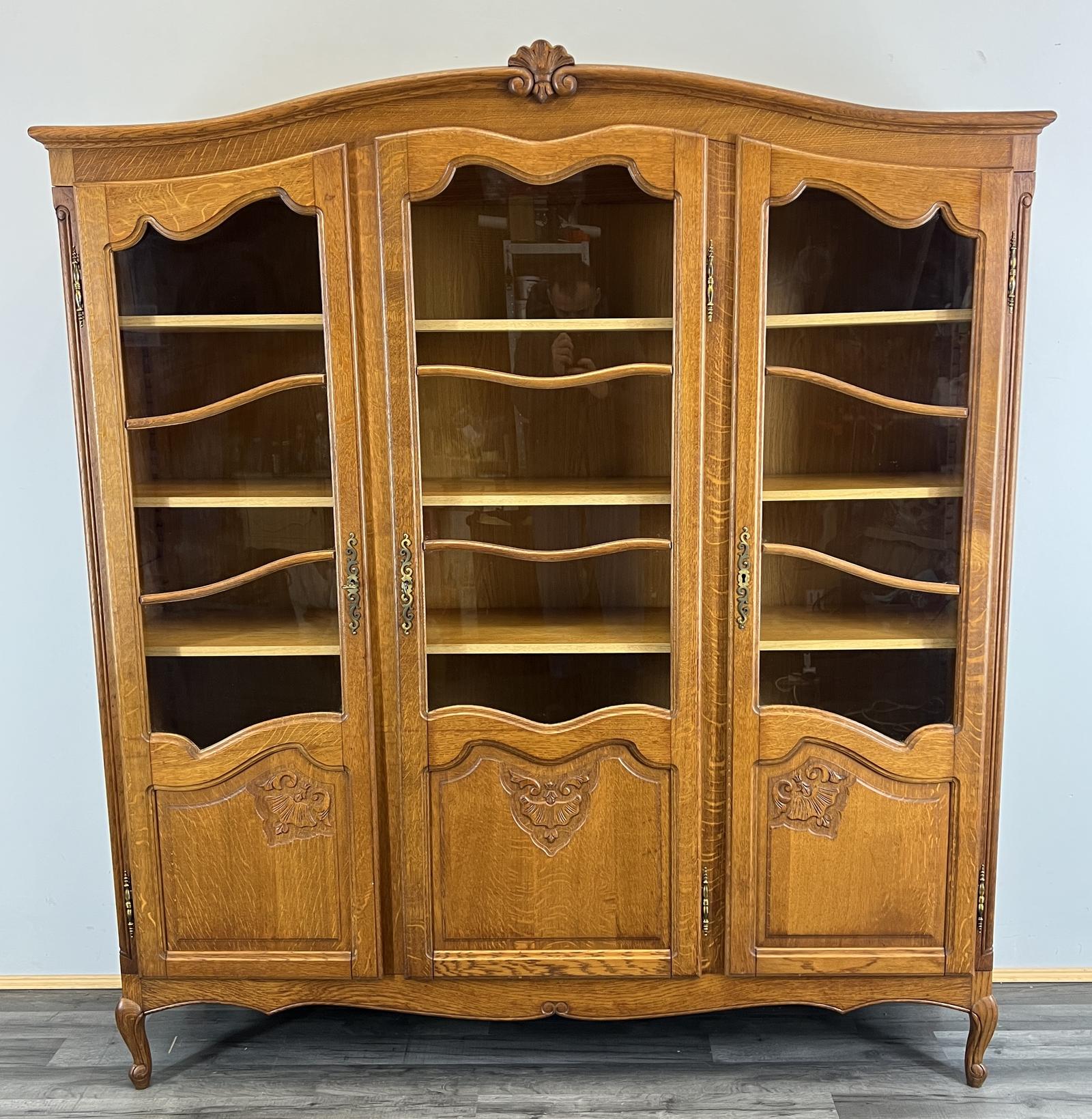 Bookcase Vintage French Style Display Oak Carved Cabinet