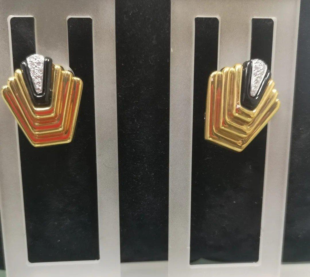 Boucles D'oreilles Or Jaune Onyx Noir & Diamants