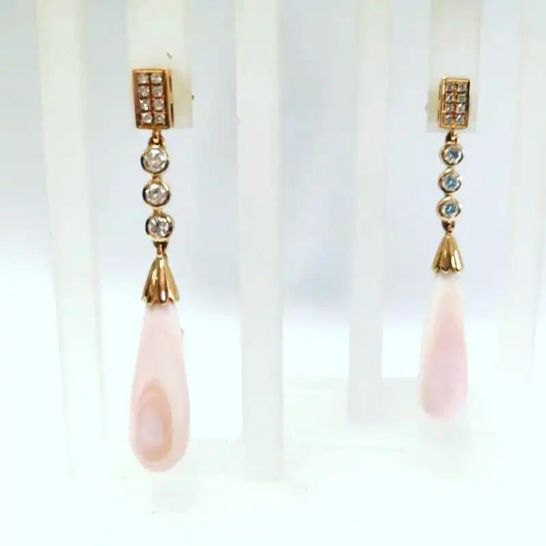 Boucles D'oreilles Or Rose Diamants & Gouttes De Corail