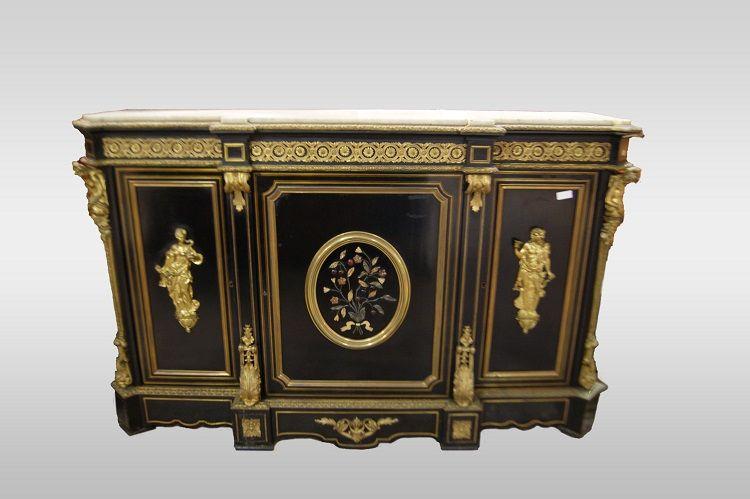 Boulle Style Sideboard with Rich Applications in Bronze and Semi-precious Stones