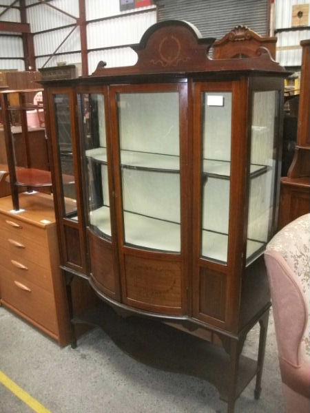 Bow Front Inlaid Mahogany Glazed Cabinet on Tapered Legs