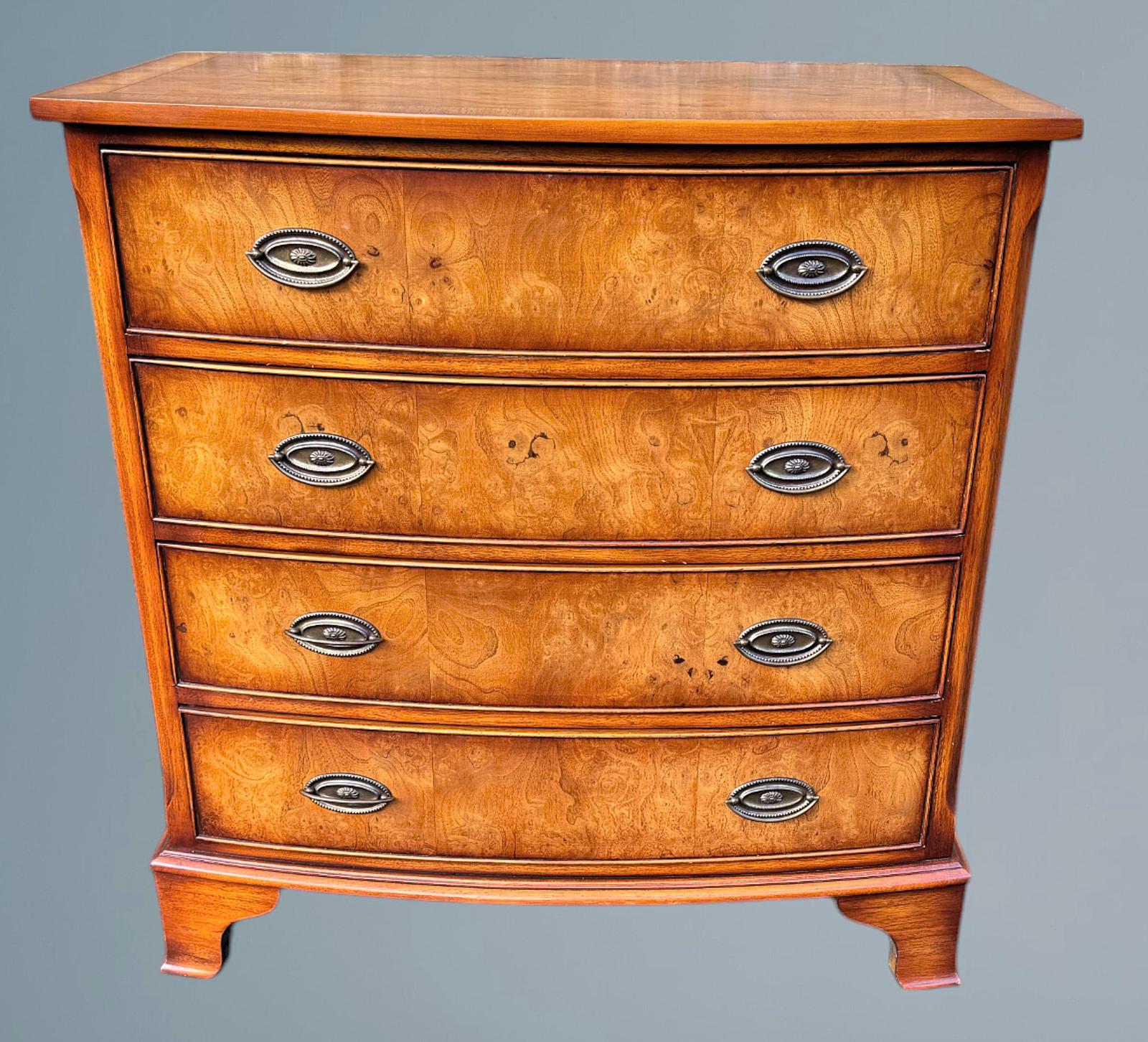 Bow Front Walnut Chest of Drawers - Reprodux Bevan Funnel