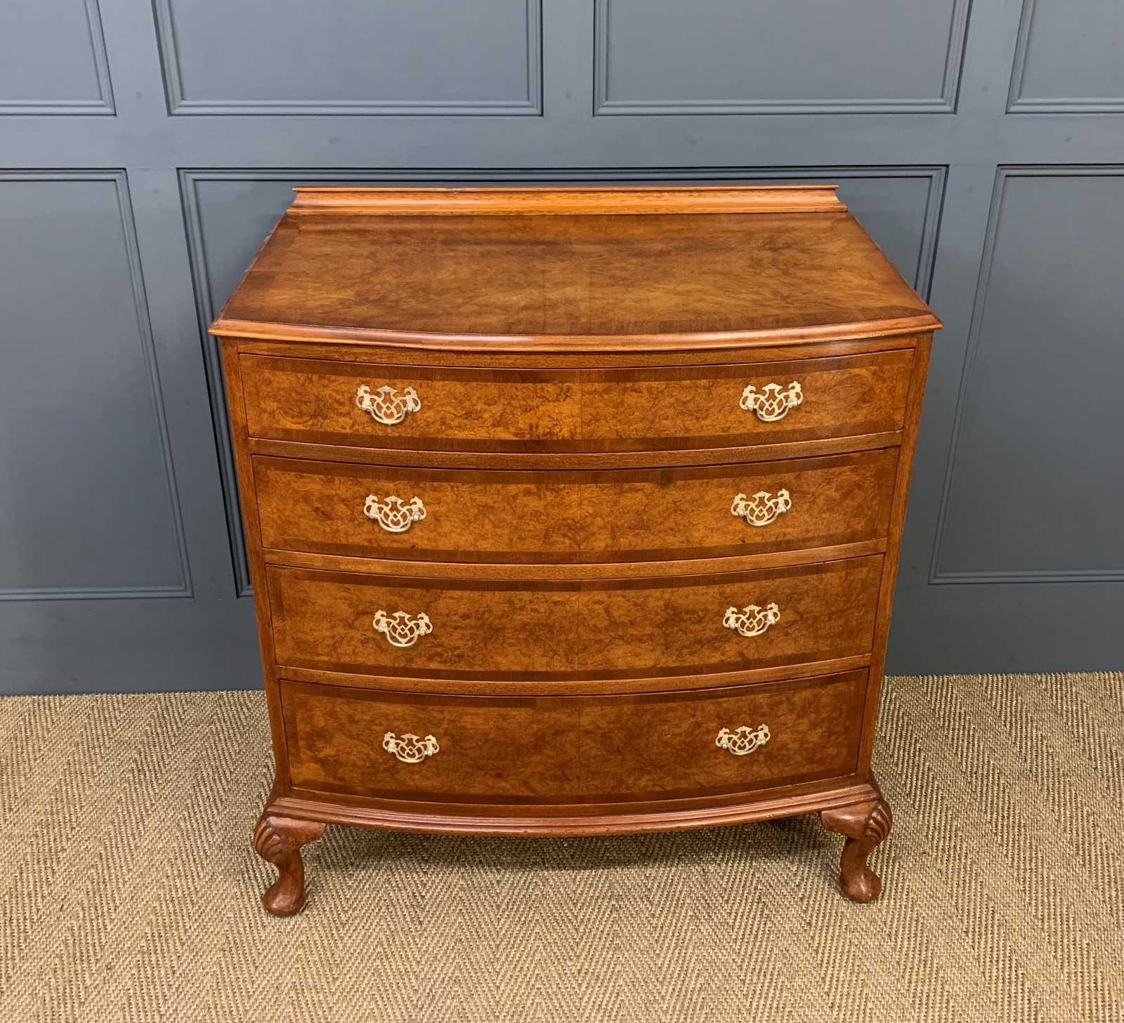 Bow Fronted Burr Walnut Chest by Maple & Co