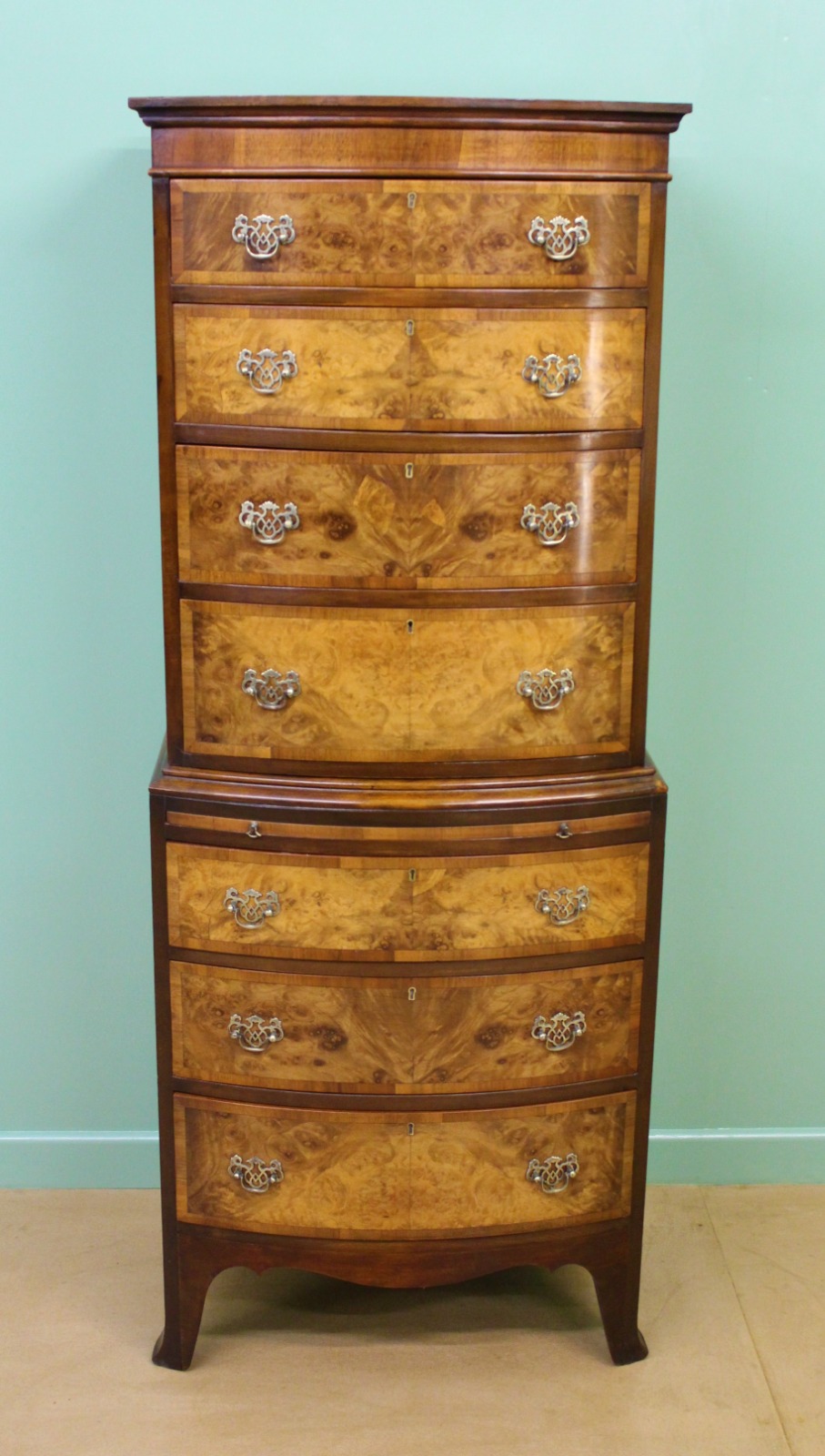 Bow Fronted Burr Walnut Chest on Chest c.1910 (1 of 1)