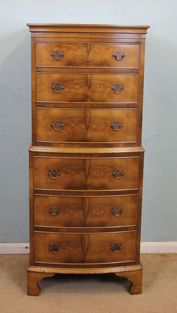 Bow Fronted Figured Walnut Chest On Chest (1 of 1)