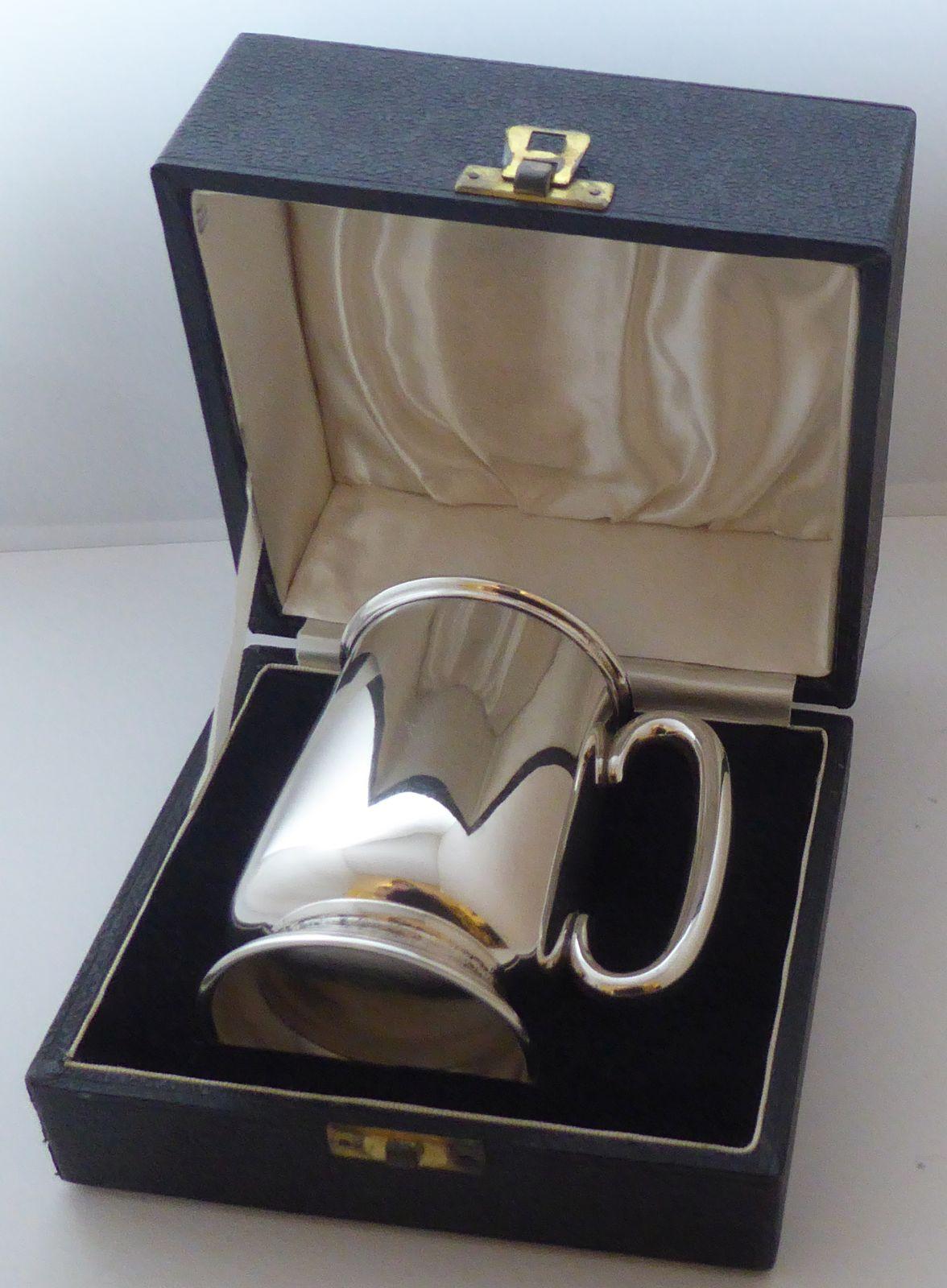 Boxed 1940 Chester Hallmarked Solid Silver Half 1/2 Pint Tankard Christening Mug