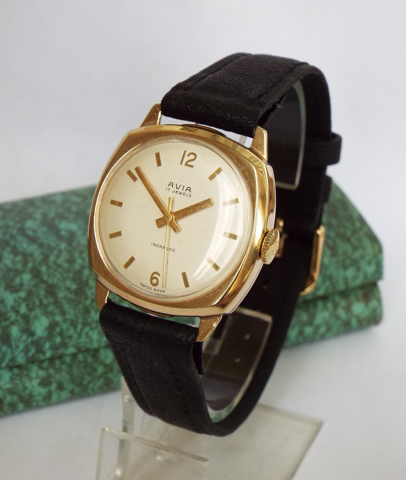 Boxed 9ct Gold Mid-Size Avia Wrist Watch, 1967