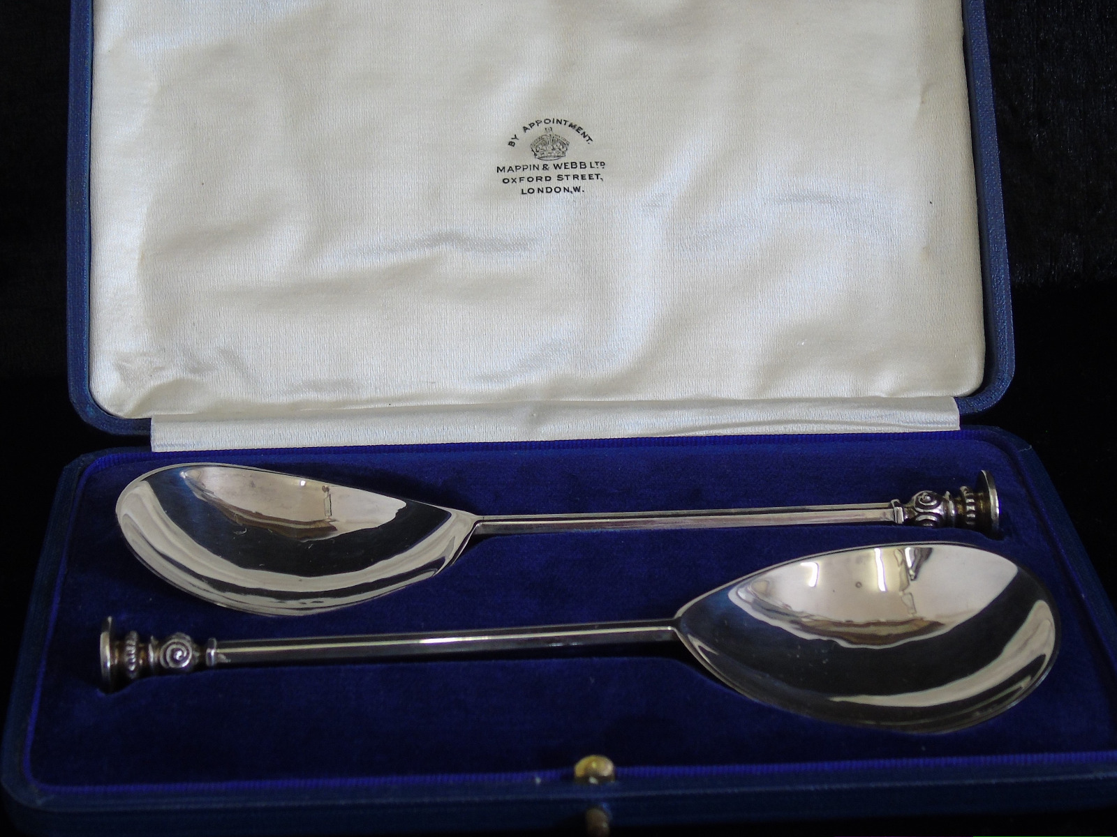 Boxed Edwardian Seal End Silver Serving Spoons