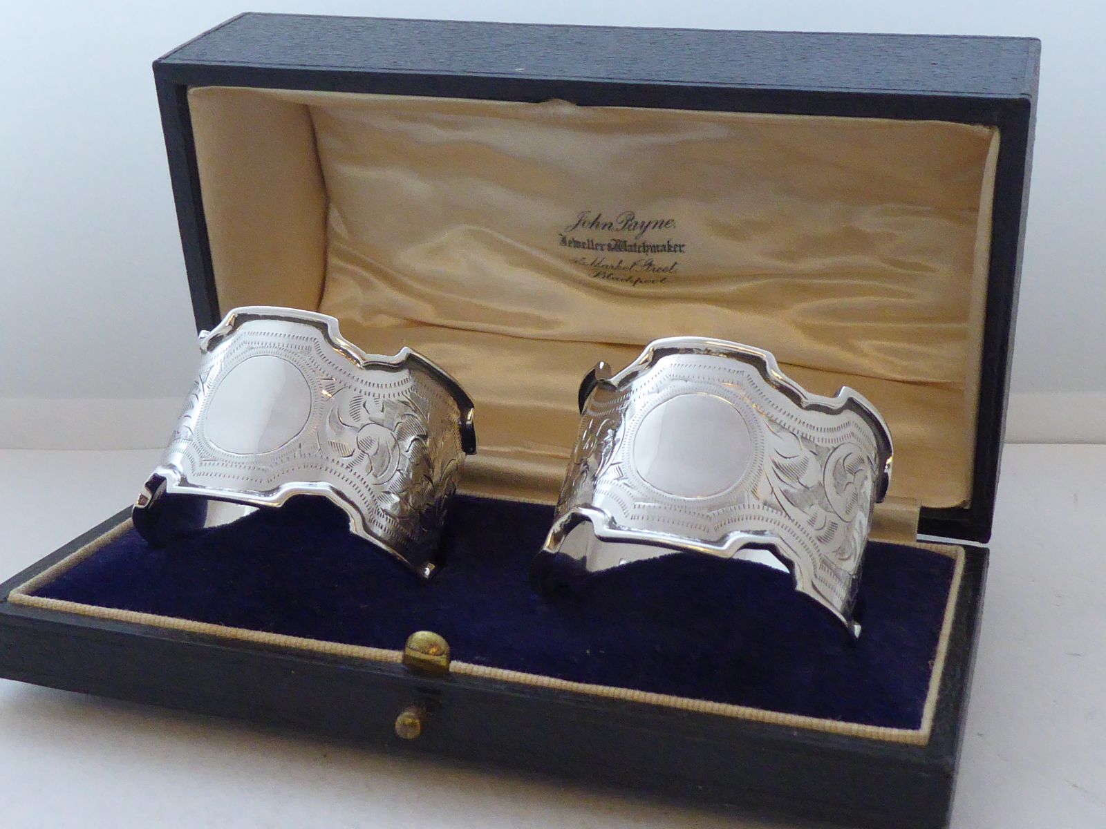 Boxed Pair 1926 Hallmarked Solid Silver Napkin Rings Serviette Ring