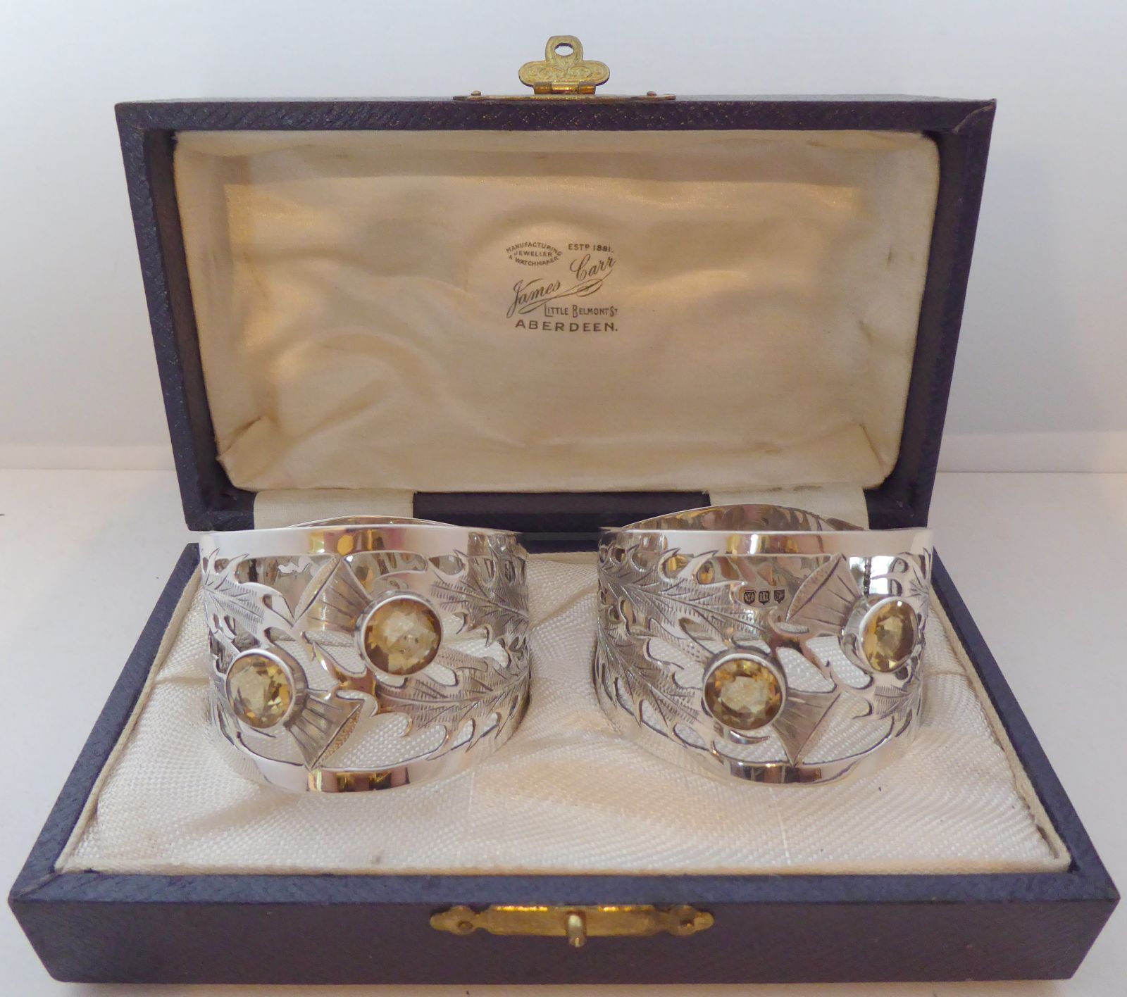 Boxed Pair 1936 Hallmarked Solid Silver Napkin Rings Serviette Ring Scottish Thistle