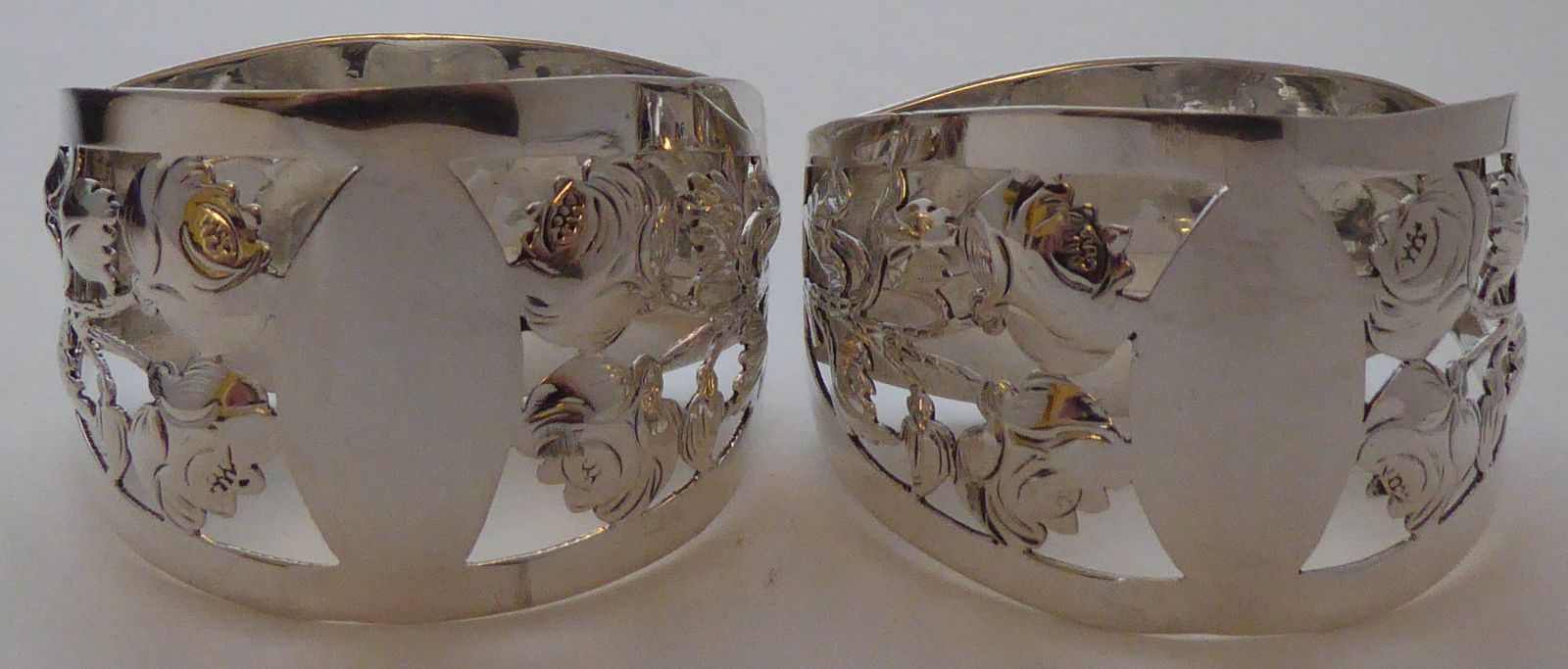 Boxed Pair English Rose 1910 Hallmarked Solid Silver Napkin Rings Serviette Ring Walker & Hall