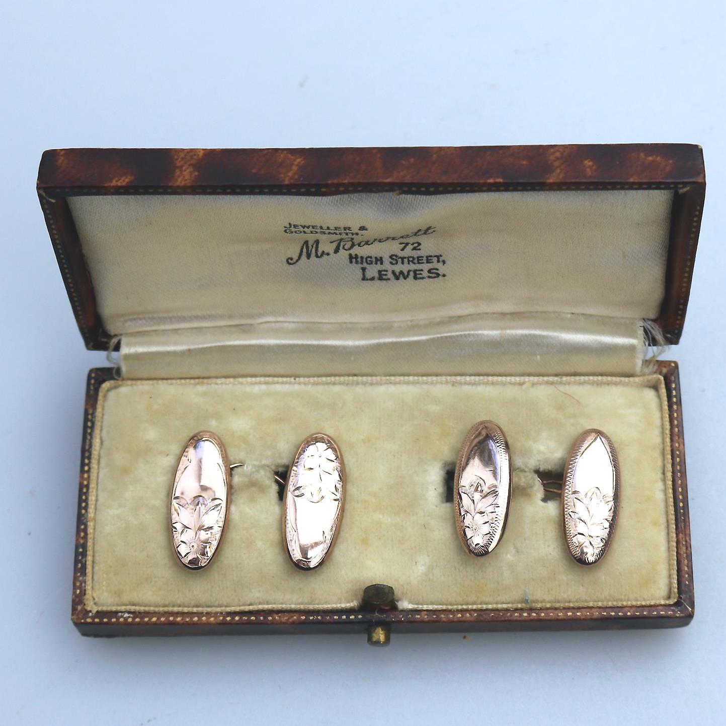 Boxed Pair of 9ct Gold Engraved Cufflinks c.1916