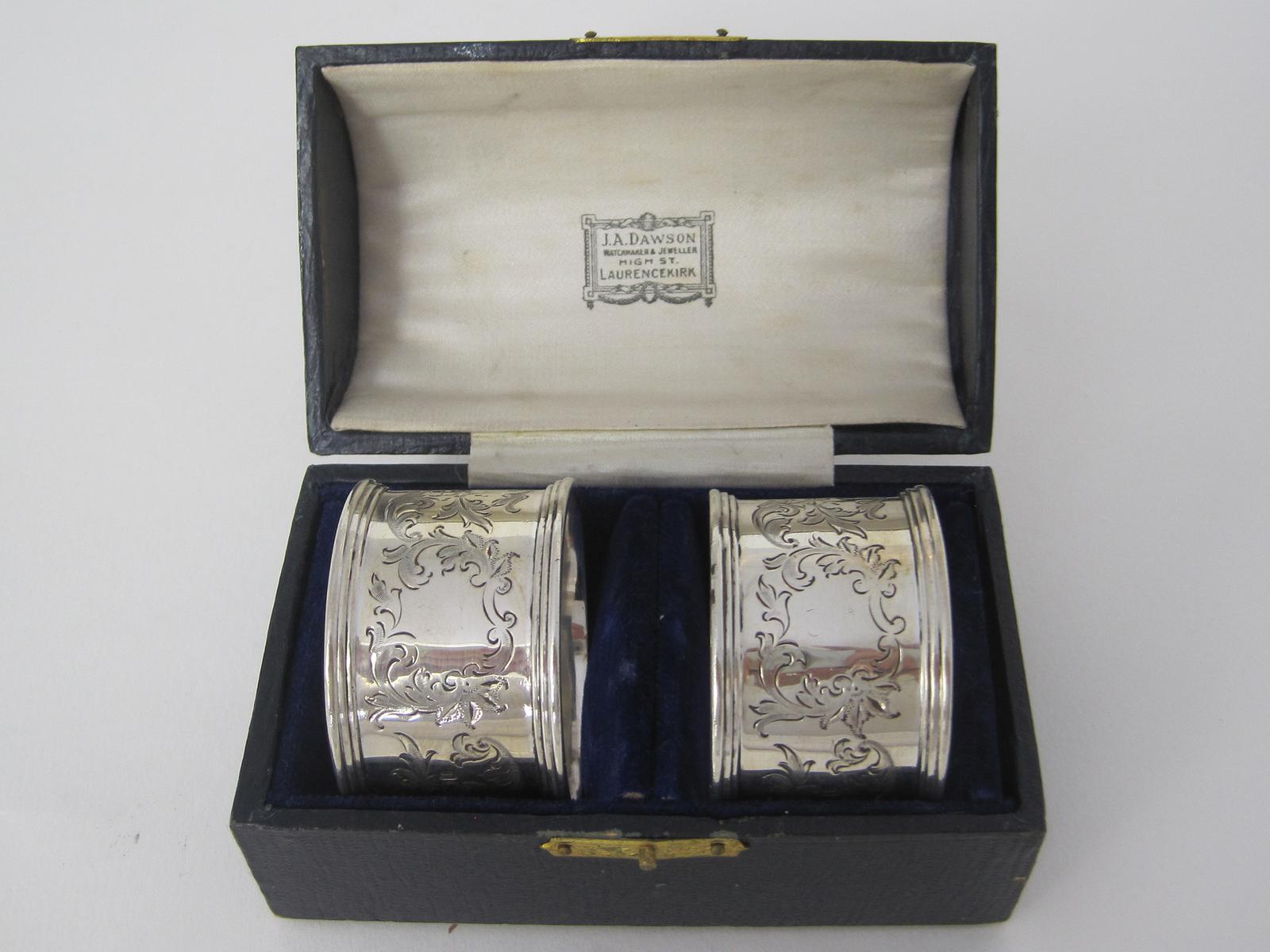 Boxed Pair of Antique Silver Napkin Rings in Blue Velvet Lined Box (1 of 6)