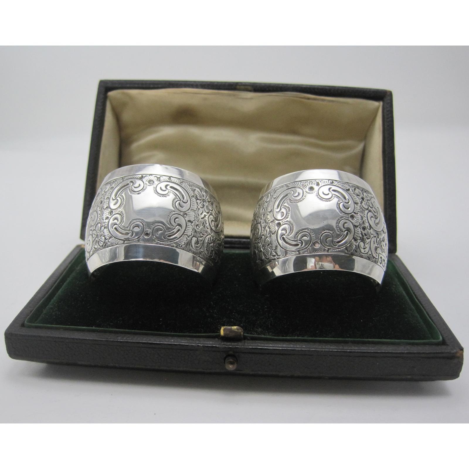 Boxed Pair of Circular Victorian Silver Napkin Rings (1 of 5)