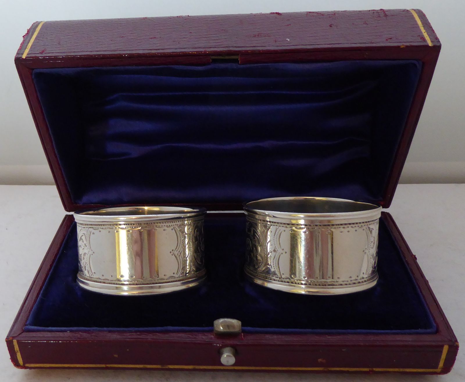 Boxed Pair of Hallmarked Solid Silver Napkin Rings Birmingham 1904 Christening Gift