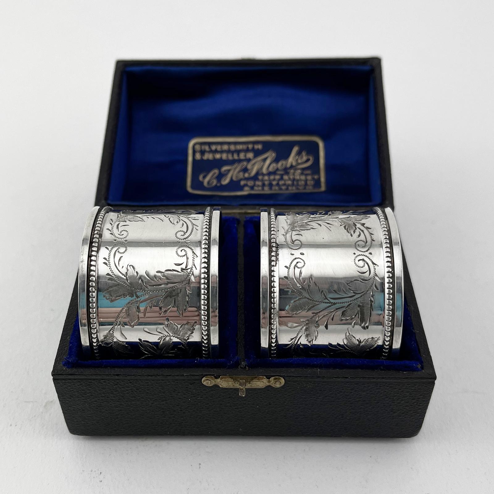 Boxed Pair of Sterling Silver Napkin Rings 1911