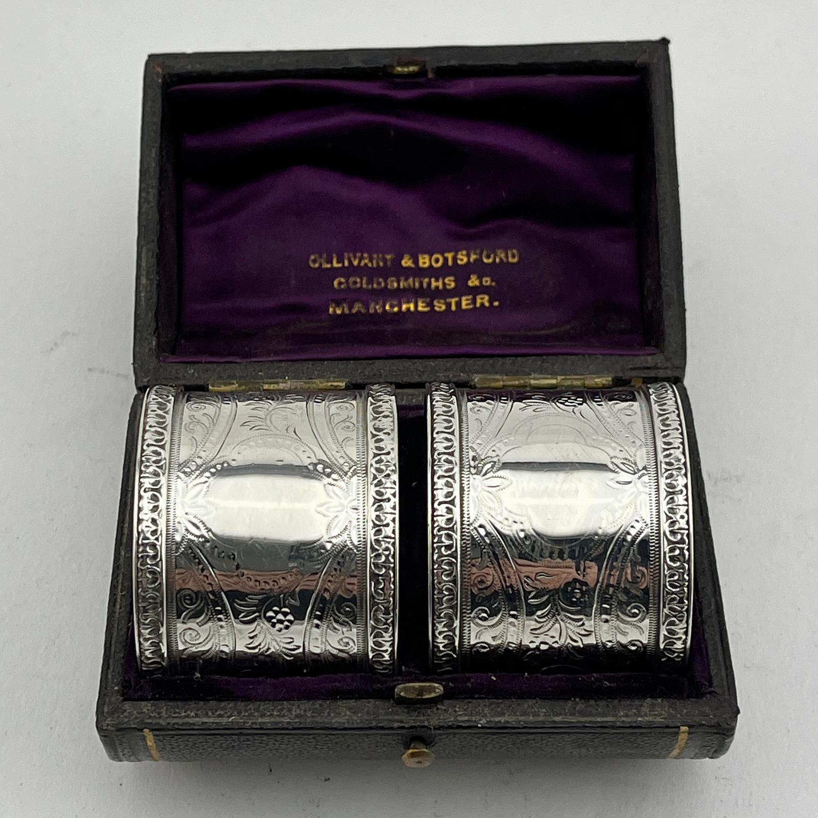 Boxed Pair of Victorian Engraved Silver Napkin Rings (1 of 5)