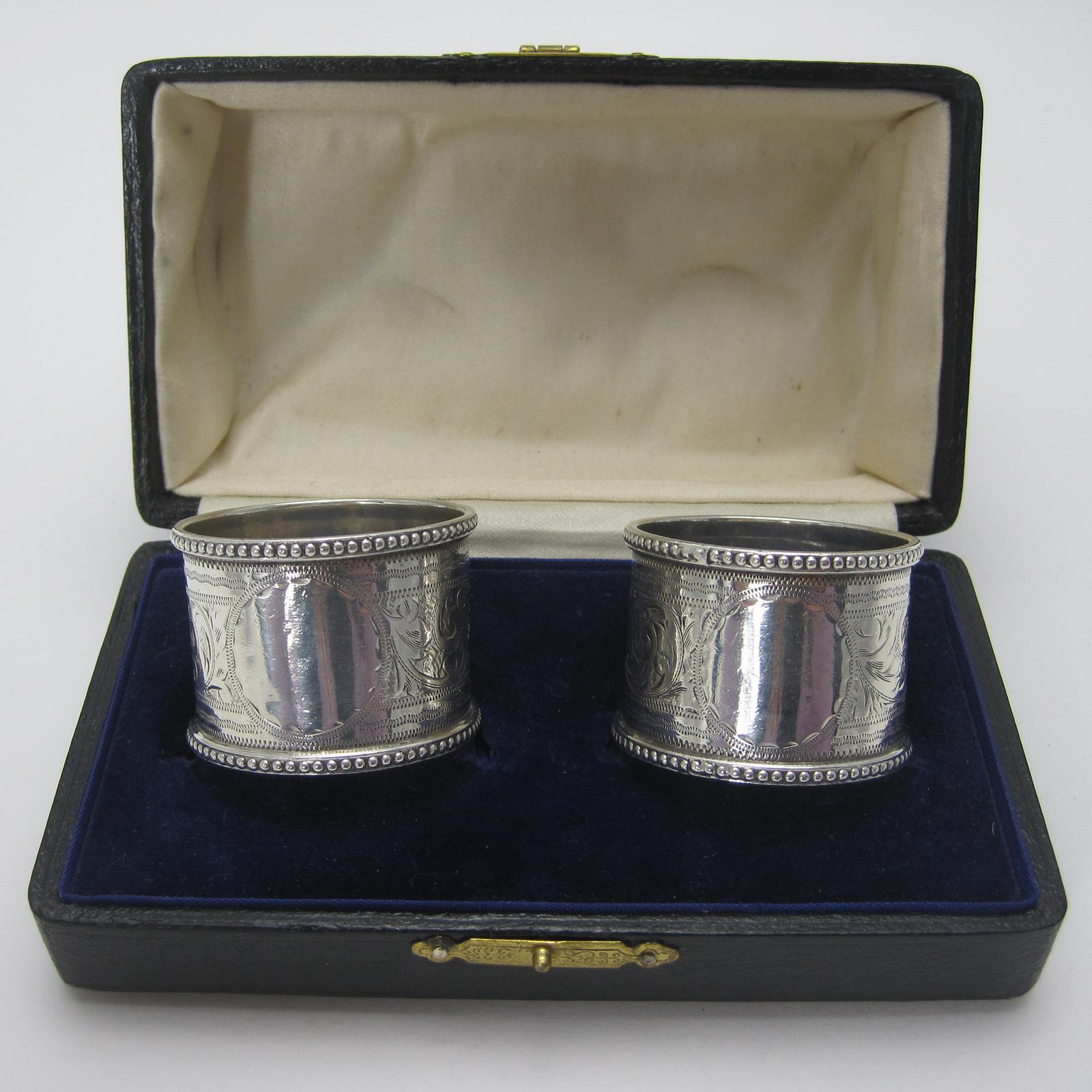 Boxed Pair of Victorian Good Quality Silver Napkin Rings