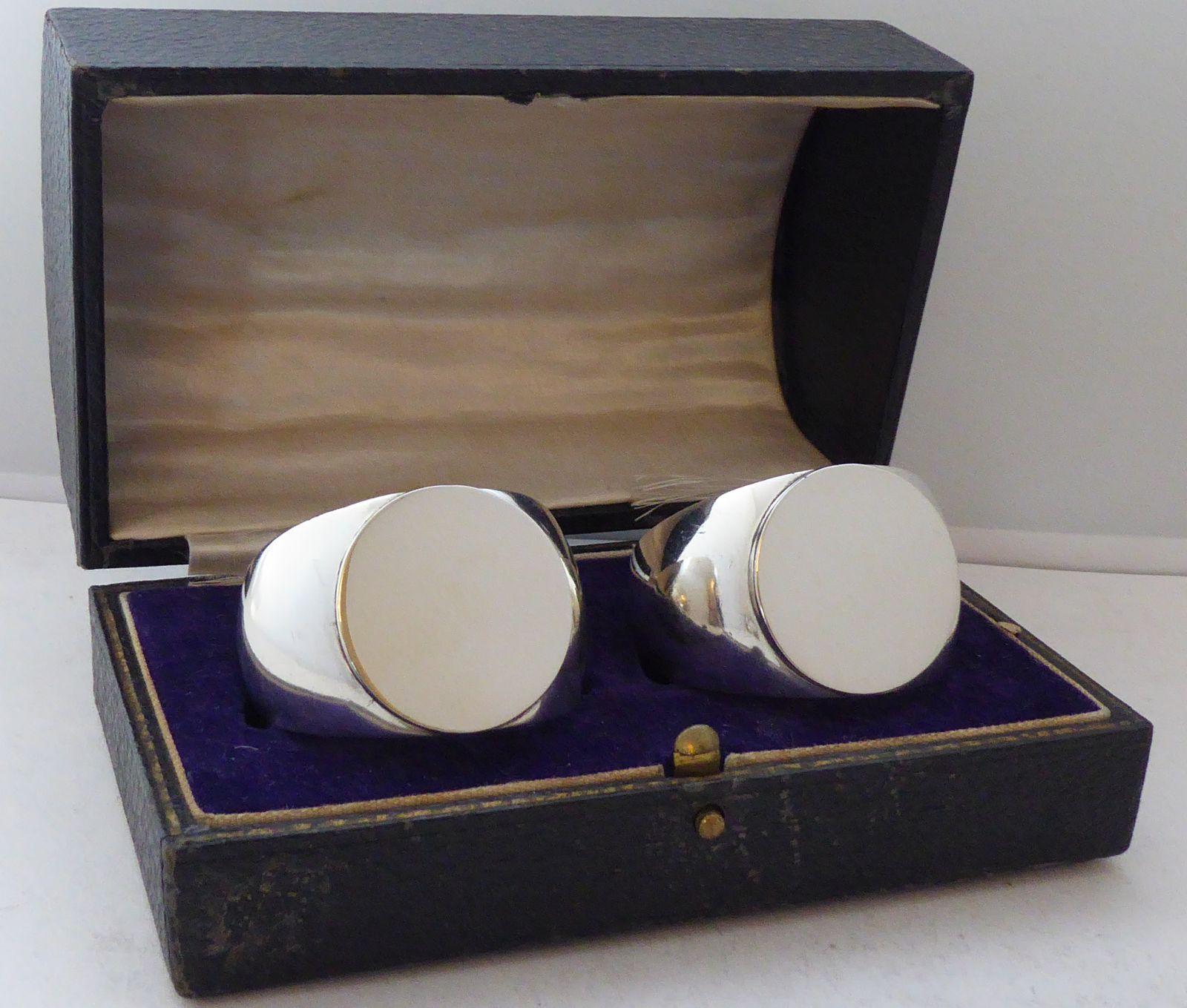 Boxed Pair Sampson Mordan Hallmarked Solid Silver Napkin Rings Serviette Ring Signet Ring Shape