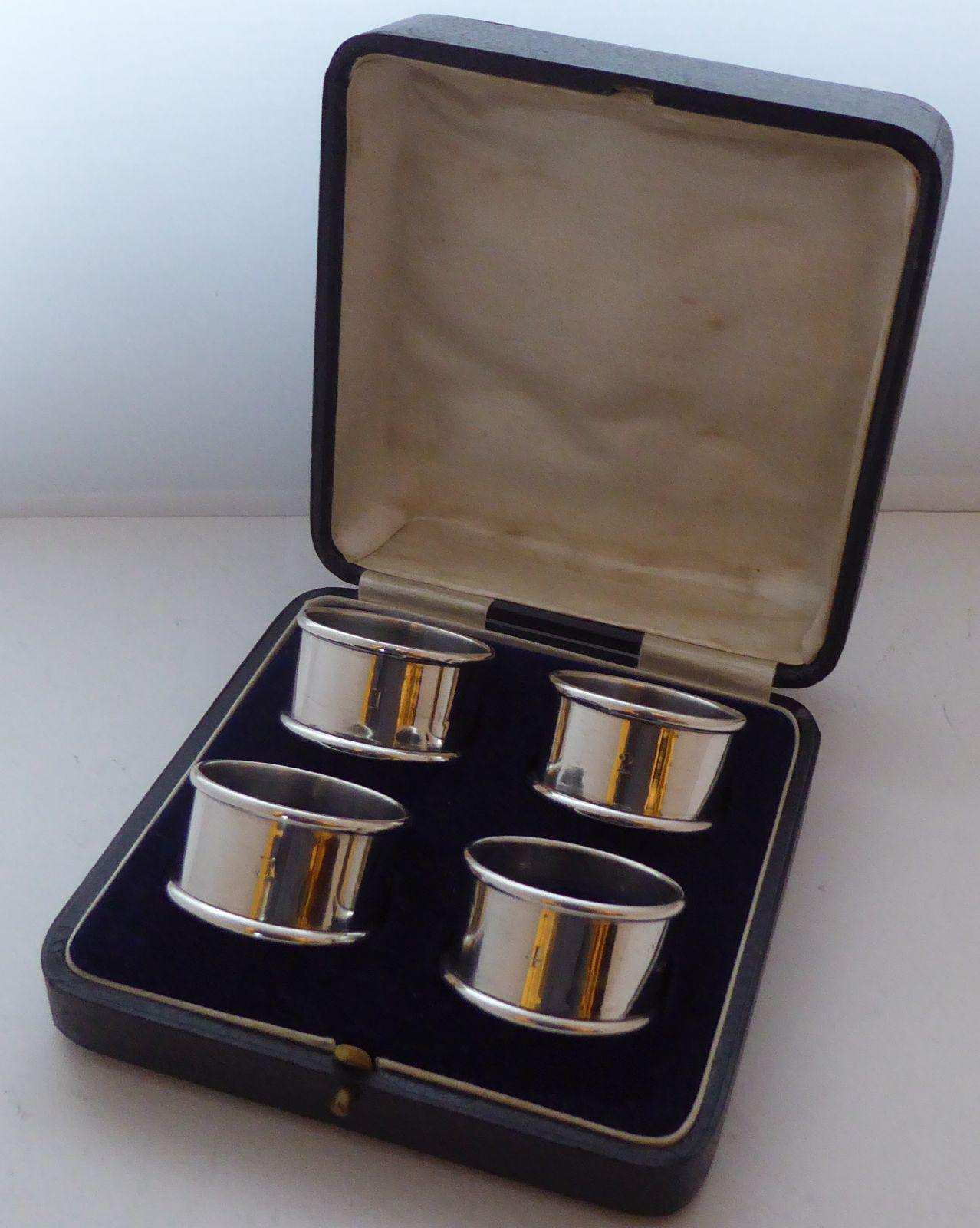 Boxed Set 4 1919 Hallmarked Solid Silver Napkin Rings Serviette Ring